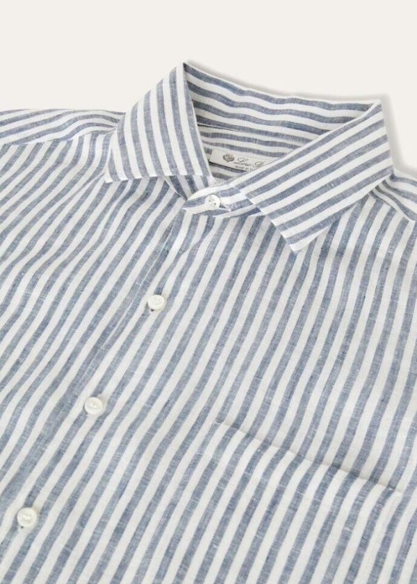 Iconic Loro Piana shirt in striped linen. The collar with facings ensures a crisp, impeccable finished look, also when worn open without a tie. The definitive Loro Piana shirt for leisure time dressing.