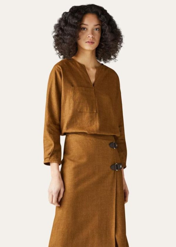 This egg-shaped tunic shirt embodies the dynamic, adventurous spirit of the Andes. Crafted from linen and wool, it evokes the luxurious elegance of vintage textiles, while the fabric is treated with a unique steam finish that is extremely soft and pleasant to the touch. The V-neck and loose-fitting sleeves symbolize a new concept of urban elegance.