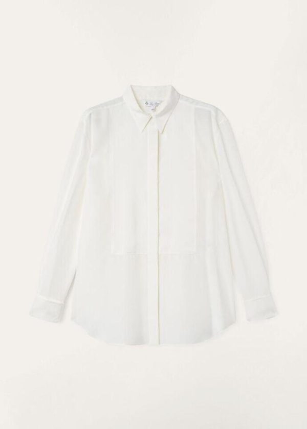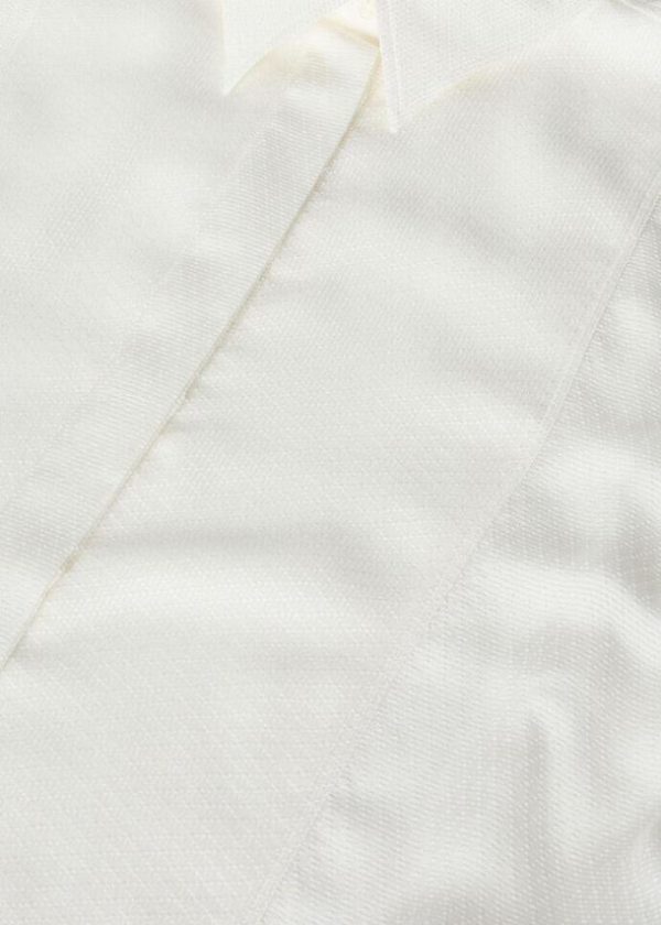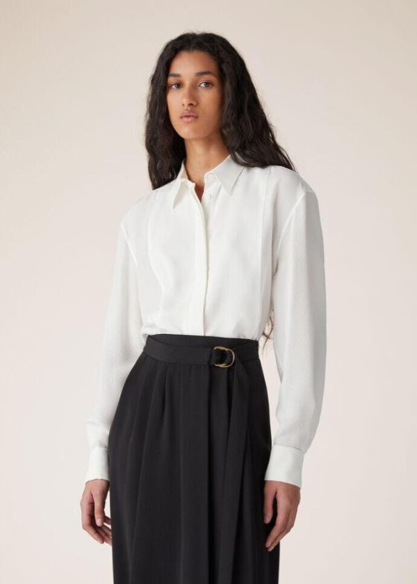 Christmas festivities and events are embodied in the splendor of refined textures and elegant silhouettes. The Jayla silk shirt features a jacquard micro pattern with a soft, compact texture that feels extremely pleasant against the skin. Inspired by men’s evening wear, this flowing style features French cuffs and a large, rectangular front plastron.
