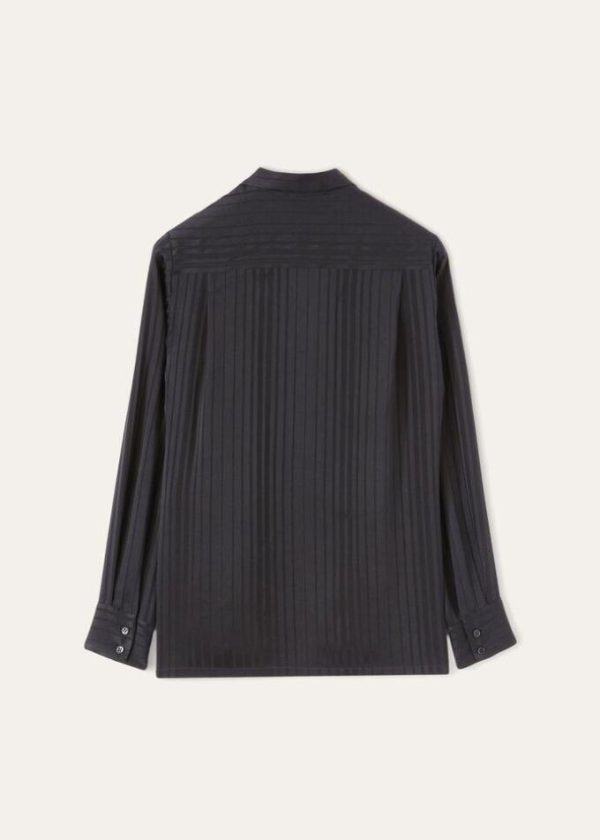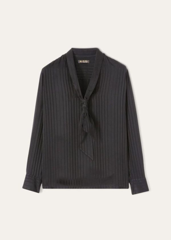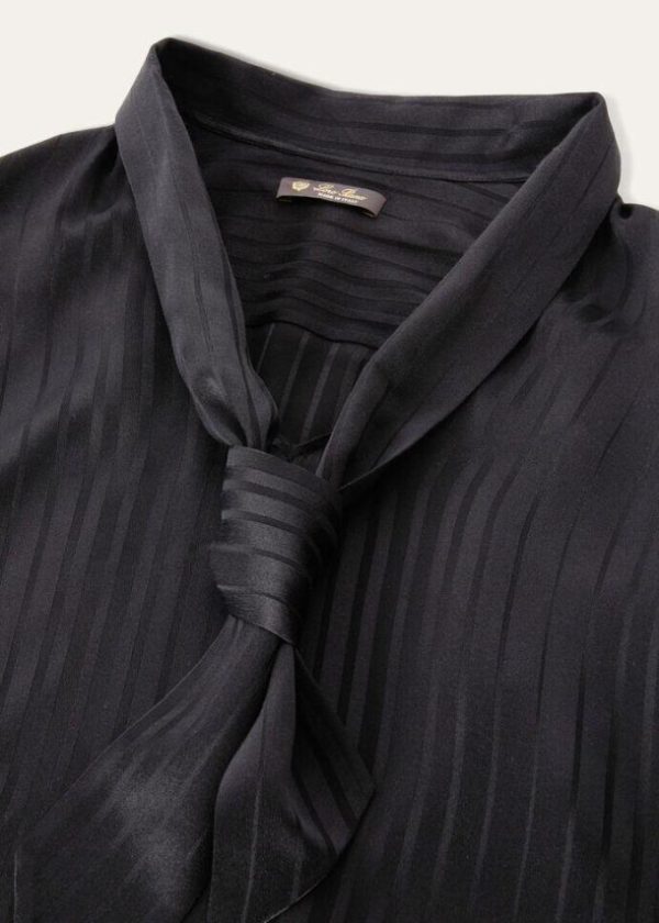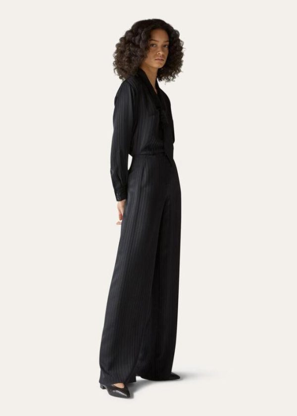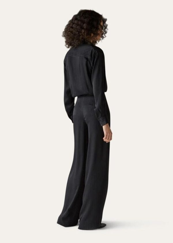 The quiet, natural elegance of the immense New Zealand landscape is embodied in a collection featuring enveloping, flowing silhouettes and a tailored allure. Crafted from lightweight pure silk, the Kya V-neck shirt is defined by a buttonless construction and knotted bowtie at the décolleté. Its textured jacquard weave is emblazoned with faded vertical stripes, creating a sophisticated play on bright and opaque color. An elegant style that creates highly feminine looks when paired with the Dresden pants.