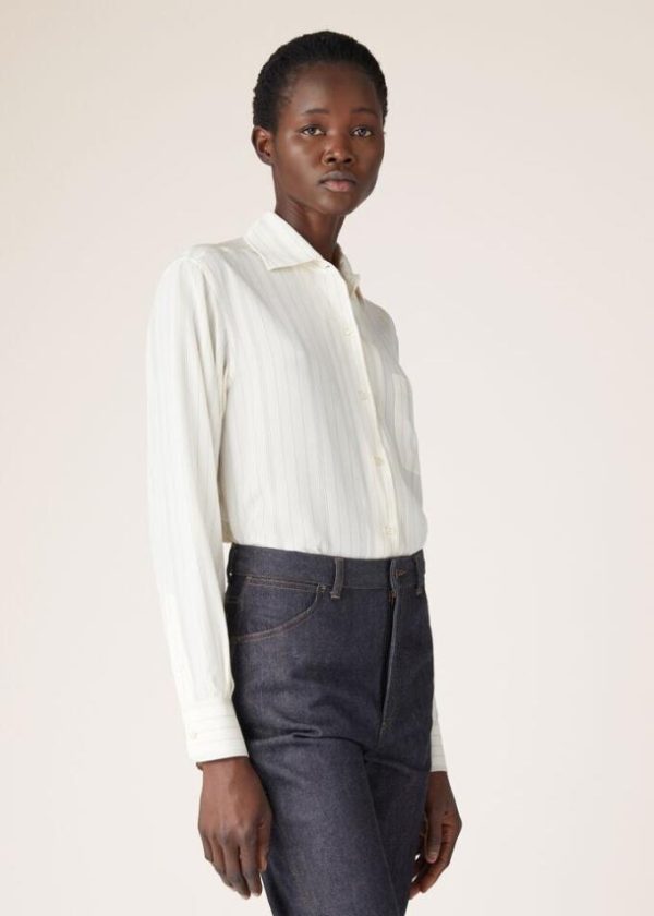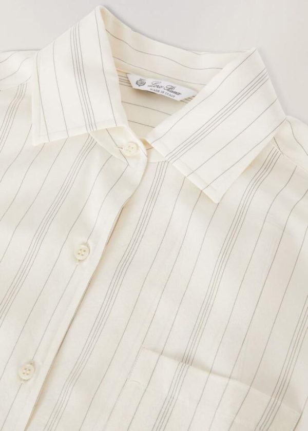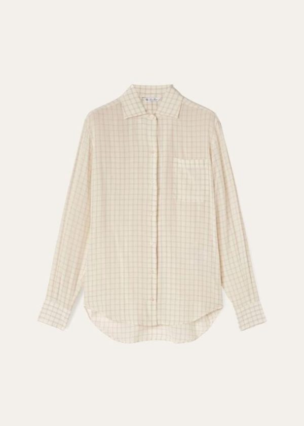 The Neo André is the female version of Loro Piana’s iconic shirt. Its hallmark characteristic is a lapel collar that is designed to be worn open. The style’s distinctly masculine allure is balanced by luxurious silk crêpe featuring a classic pattern from the brand’s archives. This combination is perfect for those seeking a casual-chic garment defined by refined elegance and femininity.
