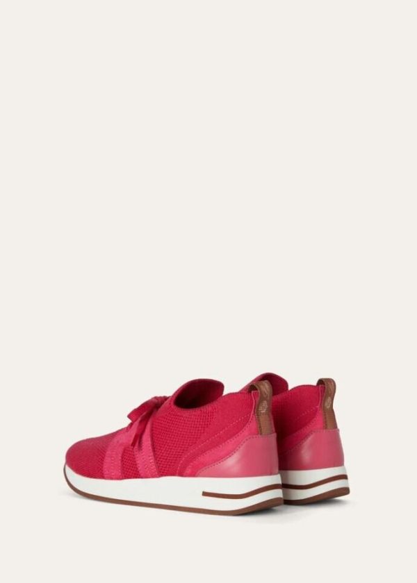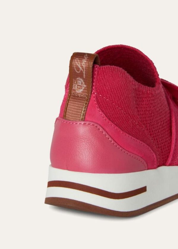 The upper is crafted on a knitting loom then assembled onto the sole in ultra-light technical material with a bagged construction