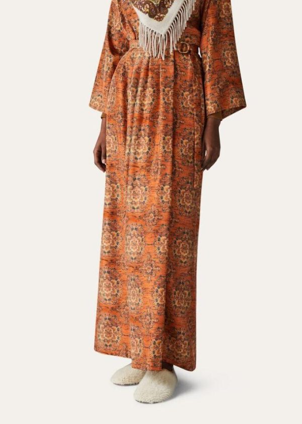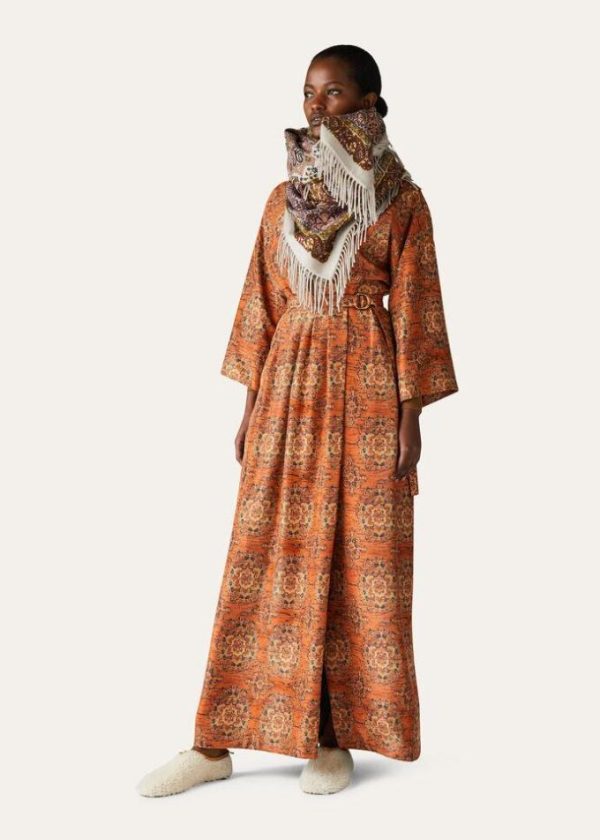 Home to some of Loro Piana’s iconic yarns, Mongolia inspires parts of the Autumn/Winter collection. The clean-lined Athina skirt is crafted from silk habutai with a texture that is uniquely soft and warm to the touch. The print and colors evoke the traditional clothing of nomadic Mongolian shepherds, creating a sumptuous, one-of-a-kind look that is perfect in the city or countryside.