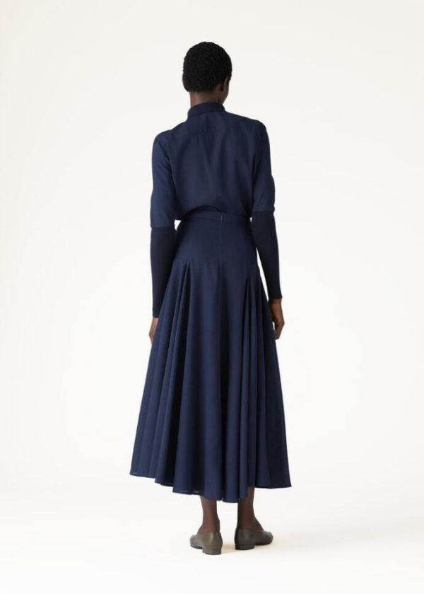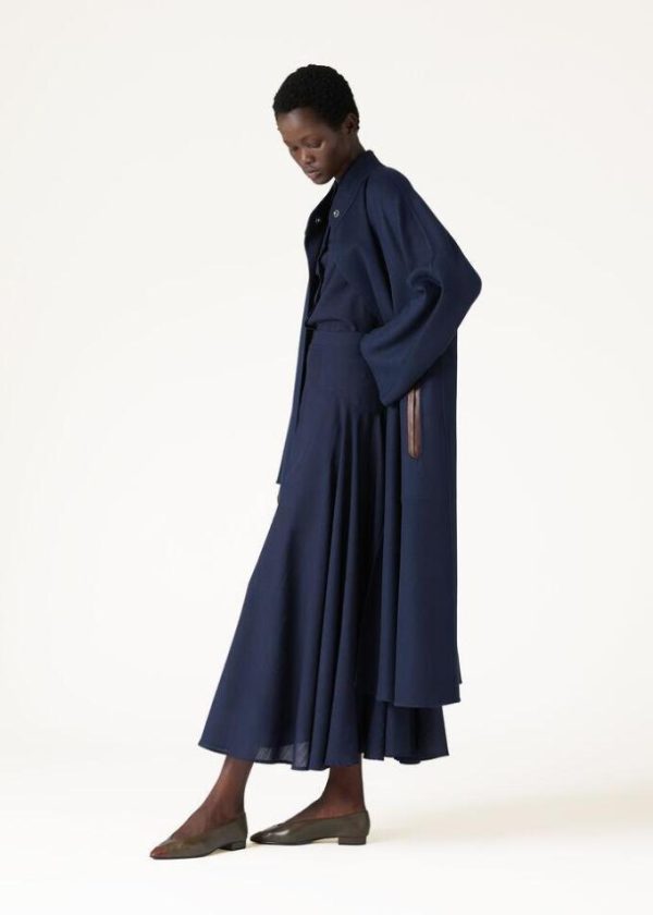 Embrace elegance in motion with our long, generously cut skirt in sumptuous wool. Double needle stitching at the hips adds a touch of refinement to this exquisite piece. The wool fabric has a brushed look and a semi-sheer, slightly slubbed texture that feels luxurious against the skin. Effortlessly slip into sophistication with the convenience of a back zip, making every step a statement of style and grace.