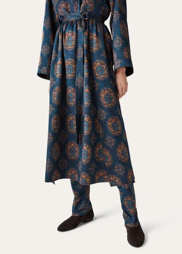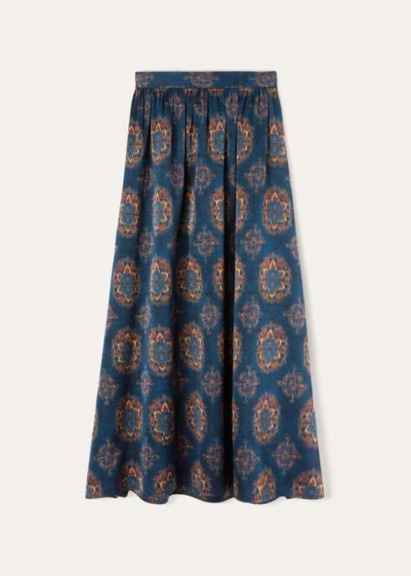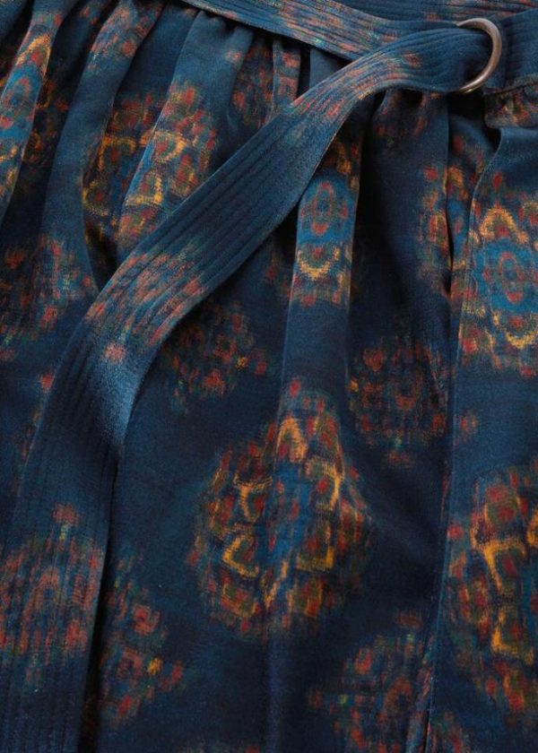 Flowing, extremely feminine double-wrap skirt made from silk and cashmere. The elegant fabric’s jacquard floral motif is defined by lively, bright colors.