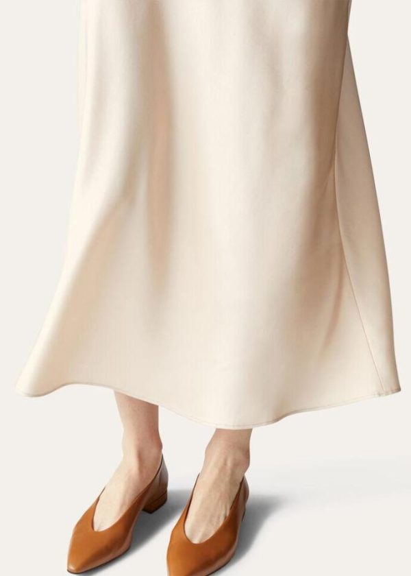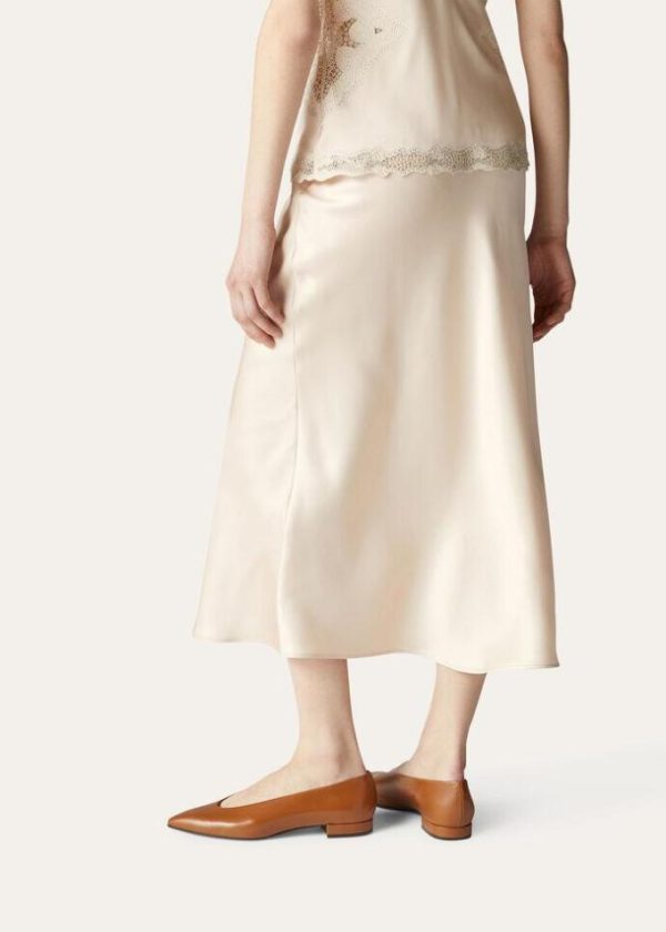 Long skirt made from sumptuous, full-bodied, soft silk that is treated to bring out the brilliance of the colors. Its flowing, mermaid cut creates an extremely clean-lined, linear, feminine silhouette.