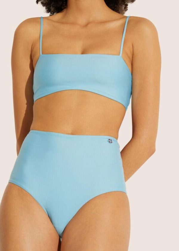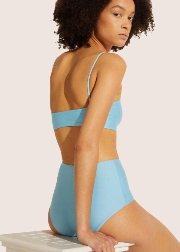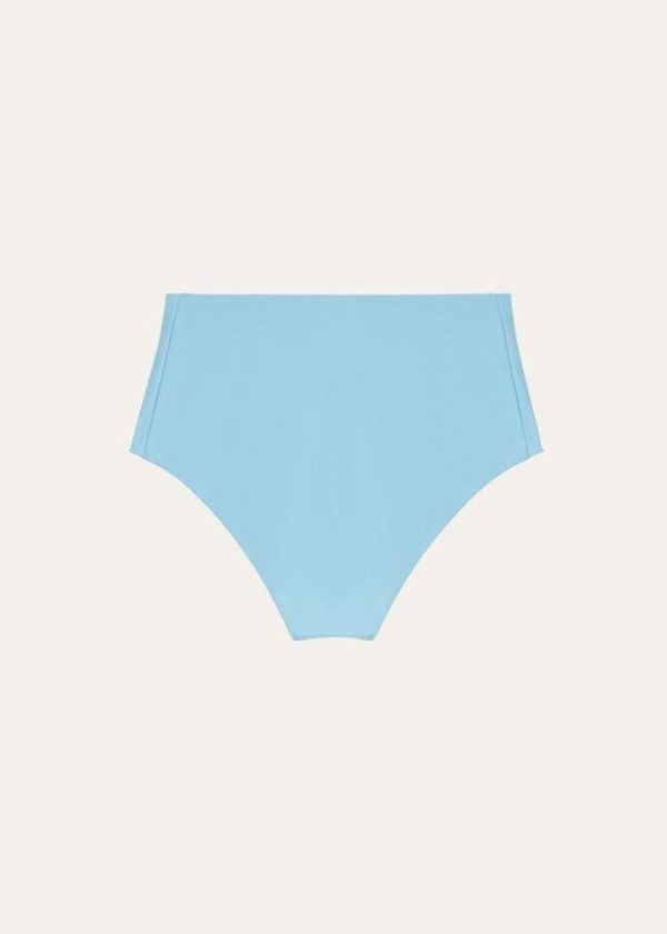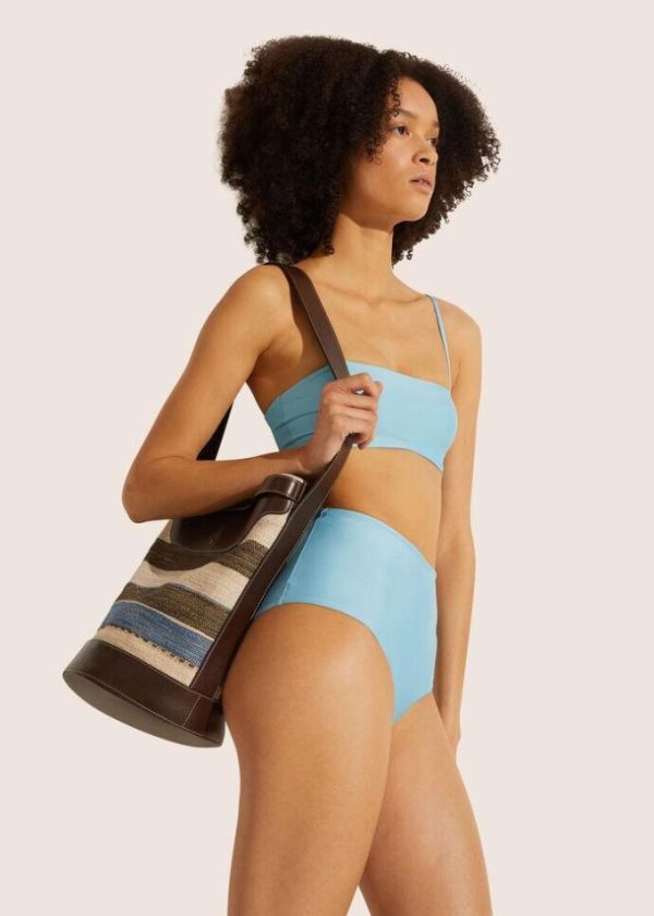 The swimsuits of Loro Piana’s Spring/Summer collection evoke the laidback life of islands surrounded by far-away waters. Crafted from soft, double-faced jersey, these high-waisted bikini bottoms are defined by bright colors and a compact texture that is lightweight, durable and similar to cotton. When worn with a matching bandeau bikini top, they create an elegant, feminine, retro-style swimsuit.