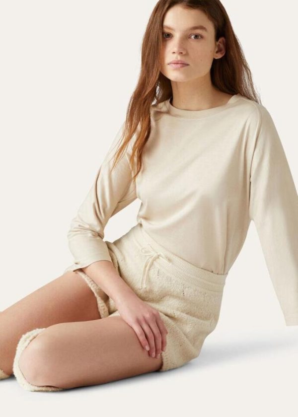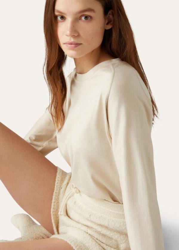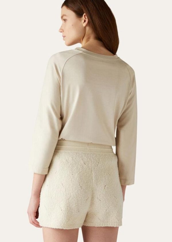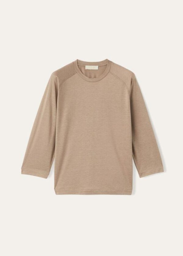 Loro Piana’s rich heritage is embodied in a capsule collection defined by natural shades, providing a new concept of everyday luxury and comfort for the coldest days of the year. Crafted from soft, silk-and-cotton jersey, this T-shirt features three-quarter raglan sleeves and an extremely comfortable fit, making it perfect for sports and leisure. Incredibly fluffy, warm clothing and lifestyle accessories that feel pleasant against the skin, combining freedom of movement and extremely high-quality raw materials.