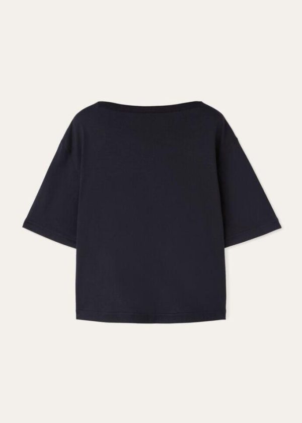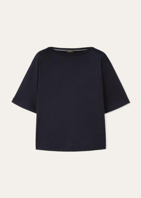 Boat-neck jersey T-shirt made from The Gift of Kings® — Loro Piana’s exclusive selection of the world’s finest wool. Thanks to a slightly oversized fit and short, elbow-length sleeves, this sophisticated style is perfect to wear under a jacket.