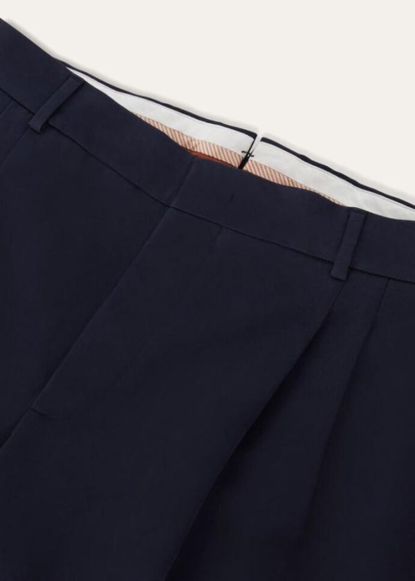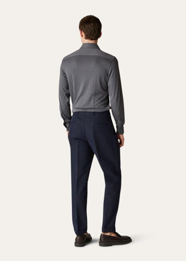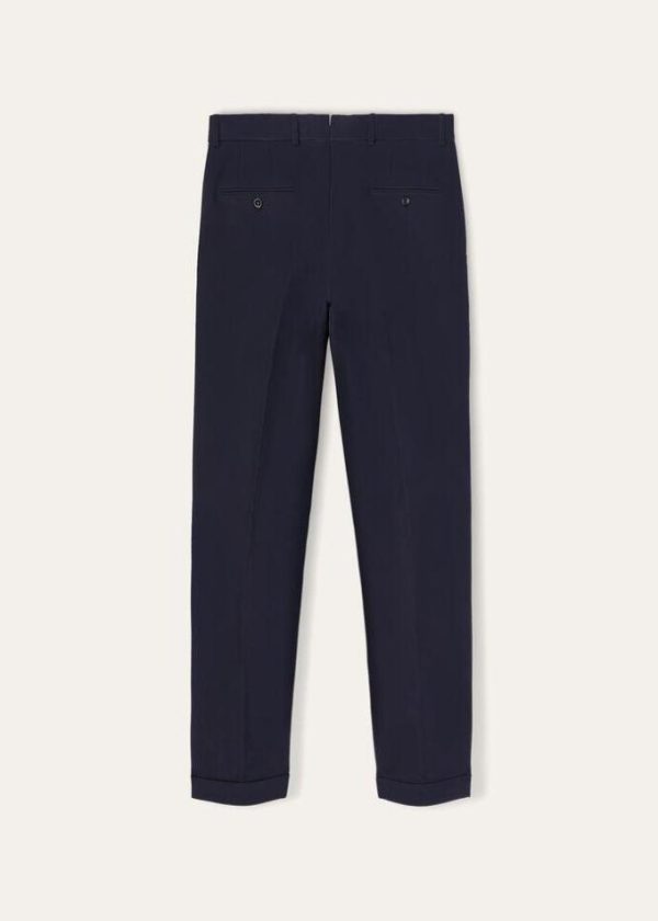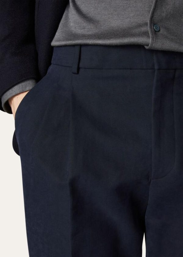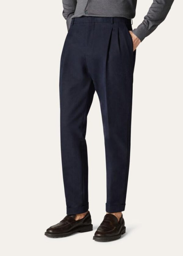 Pants made from double-faced cotton satin. This classic style features two darts and a slightly high waist. Their cut is wider at the thighs before lightly tapering at the ankles, guaranteeing maximum comfort. The fabric’s delicately sanded finish is soft and velvety to the touch.
