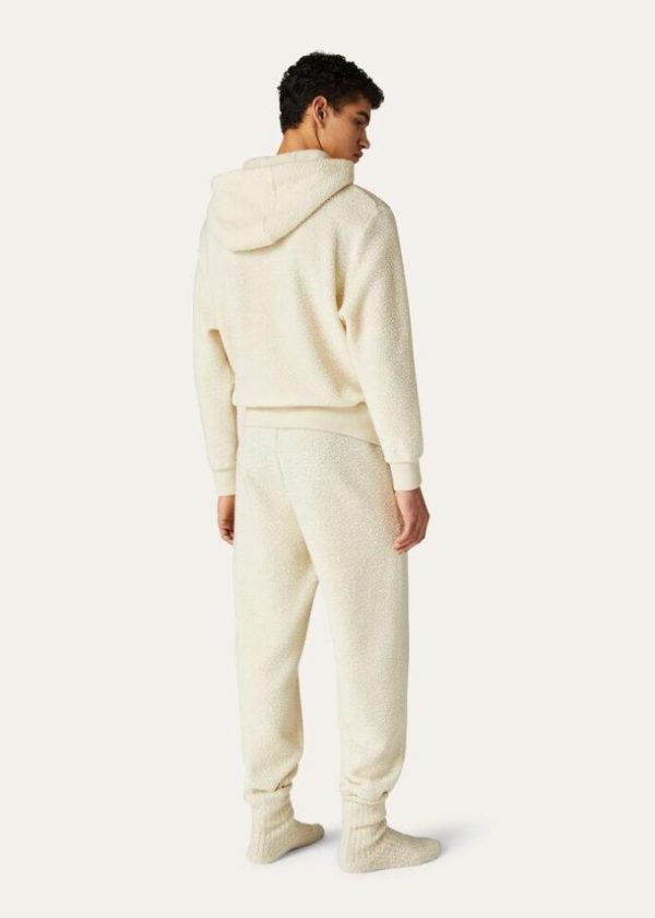 Loro Piana’s rich heritage is embodied in a capsule collection defined by natural shades, providing a new concept of everyday luxury and comfort for the coldest days of the year. Crafted from cashmere, cotton and wool jersey, these joggers feature an exceptionally soft texture and shearling-like surface. Thanks to their modern, flowing look and knit drawstring waist, they create an impeccable, elegant athleisure tracksuit when worn with one of the capsule collection’s sweatshirts. Incredibly fluffy, warm clothing and lifestyle accessories that feel pleasant against the skin, combining freedom of movement and extremely high-quality raw materials.