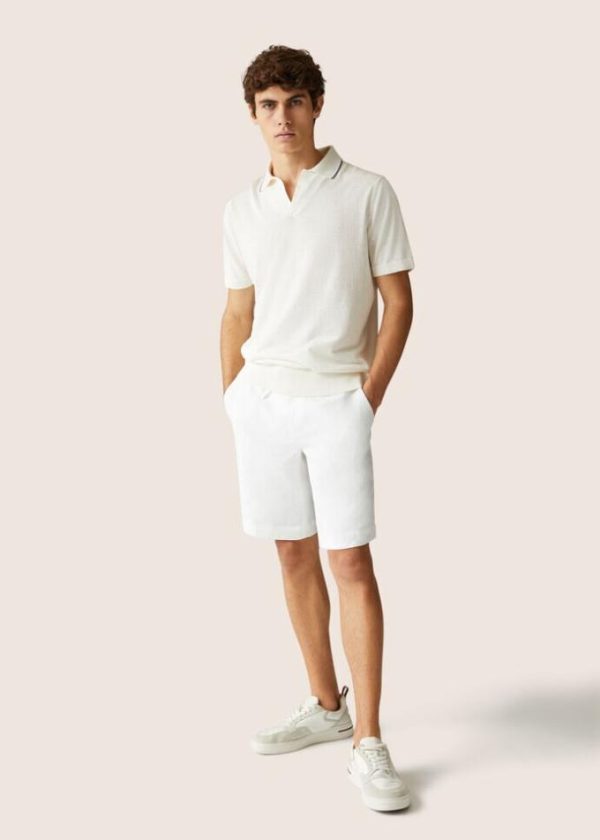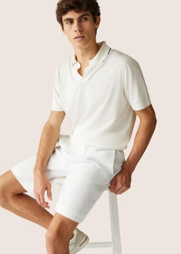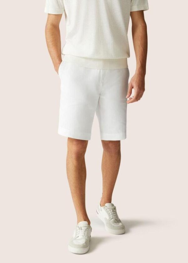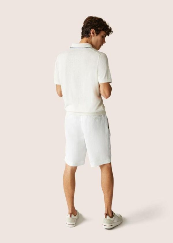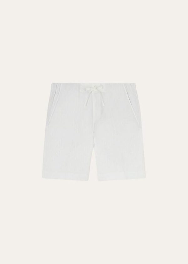 Linen-canvas Bermuda shorts. They combine tailored style with a sporty allure, thanks to an adjustable drawstring waist and extremely comfortable slim fit.