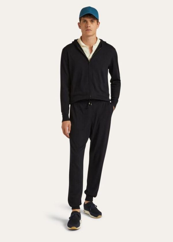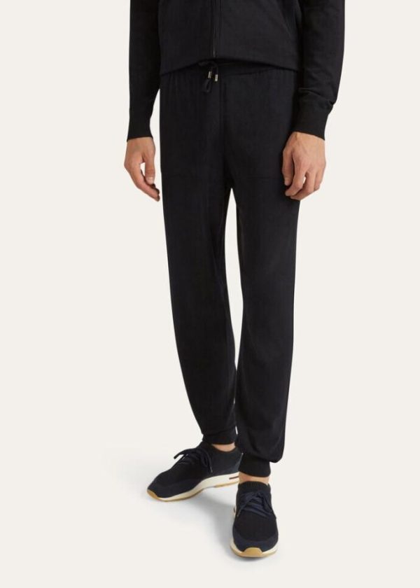 Athleisure pants made from The Gift of Kings® — Loro Piana’s exclusive selection of the world’s finest wool, with fibers measuring only 12 microns in diameter. This plain-knit style is defined by a comfortable cut and sporty allure. Two front welt pockets and two back patch pockets complete the look.
