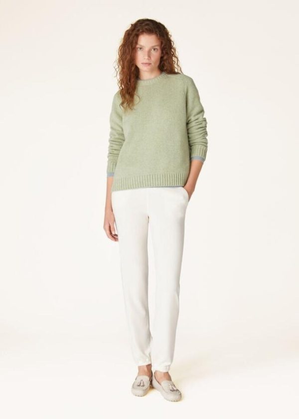Light-weight, relaxed cut trouser in knitted baby cashmere, in a very compact plain knit. Warm and supremely comfortable, with drawstring waist and elastic cuffs. Team with one of the Merano sweaters in baby cashmere to create the ultimate loungewear for relaxing at the spa or après ski.