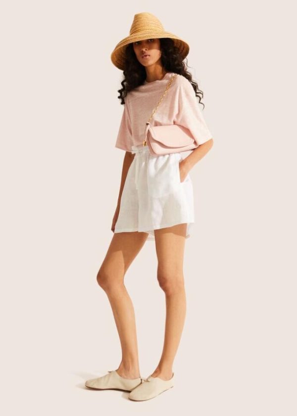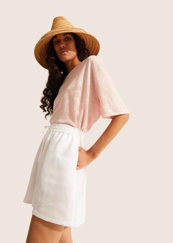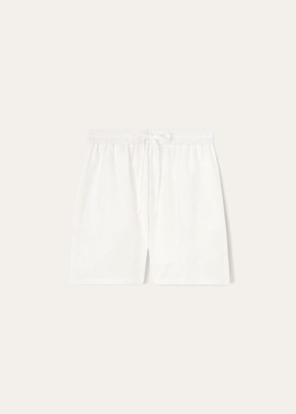 These flowing shorts feature a gathered waistband, evoking lazy days spent lounging on faraway beaches. The naturally fresh, lightweight linen fabric is treated with an aloe finish, making it soft, draped and wrinkle-resistant. The perfect summer Bermuda shorts to wear with the collection’s T-shirts and tops.