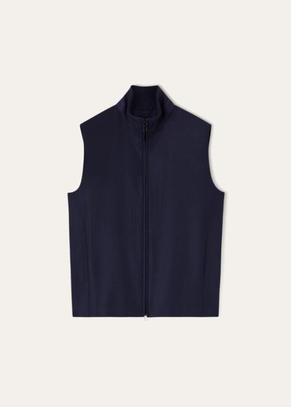Vest made from double-faced The Gift of Kings® — Loro Piana’s exclusive selection of the world’s finest wool. This extremely lightweight, comfortable style is defined by a minimalist, straight cut and handsewn invisible seams.