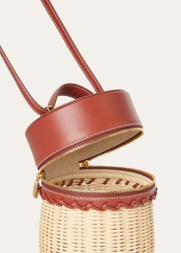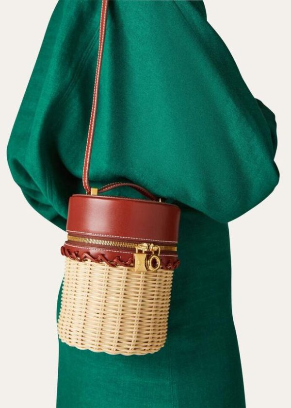 This new crossbody bag is part of the Extra Bag line. It is made from wicker, a luxury material dating back to ancient times. that is obtained from the heart of the plant and handcrafted on a loom by expert artisans using historic weaving techniques. The calfskin details are exceptionally soft, thanks to meticulously selected materials and exclusive techniques used for tanning, dying and finishing, evoking the glove-making tradition. Its unique cylindrical shape evokes vintage small leather goods, while new three-dimensional My Charms complete this elegant, feminine style.